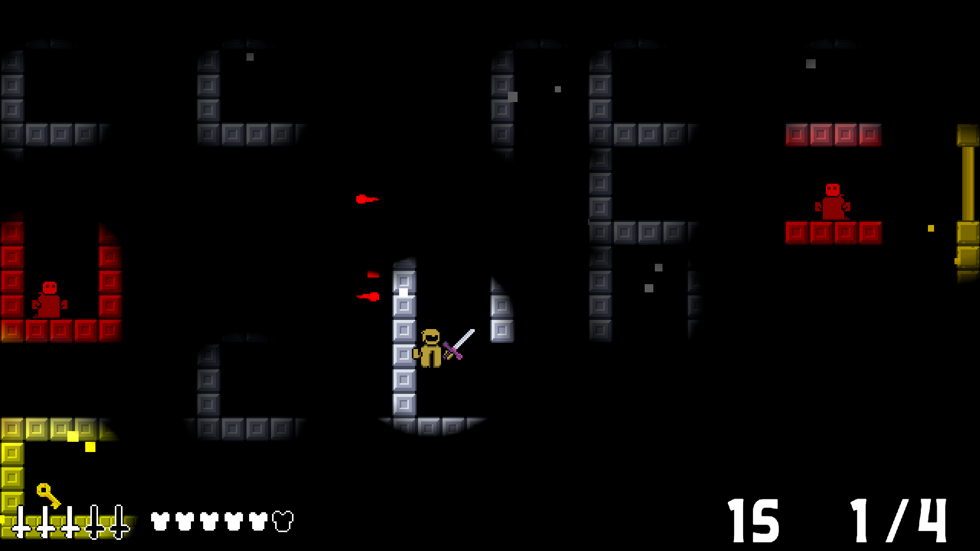 Explore an infinite procedurally generated dungeon as a sword whose wielders are replaced after they fall in battle. The player has the ability to drain health from the wielder to the sword, and, when a wielder falls, the run is continued from the start of the last dungeon. When the sword breaks, the player can choose to sacrifice the wielder for a full health boost; however, each run is limited to three wielders with different stats.